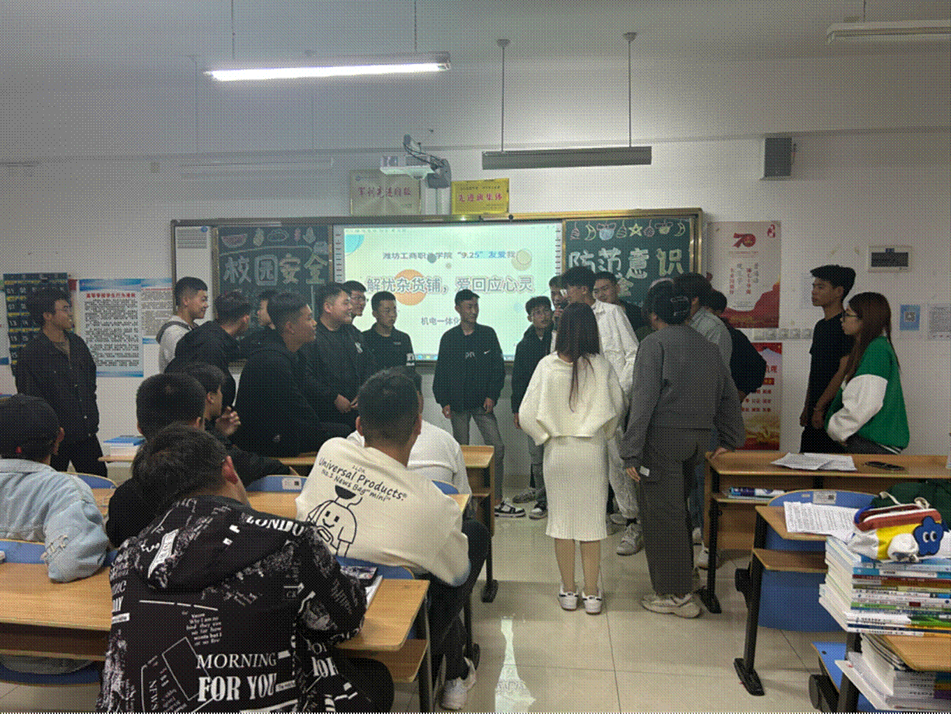 为了进一步加强我校心理健康教育工作,提高学生心理健康意识,引导大学生形成健康、乐观、积极的学习方式和生活态度,树立正确的价值观。2023年10月19日晚,潍坊工商职业学院心理健康教育中心组织2023级全体学生召开“9.25友爱我”班集体心理活动课。以班级活动课的形式,培养学生的良好个性,有助于形成和增强班级凝聚力,增加集体荣誉感。各二级学院党支部书记、团支部书记、心理工作站站长全程参与跟进此次心理活动课,各班辅导员也深入班级亲自体验此次活动。