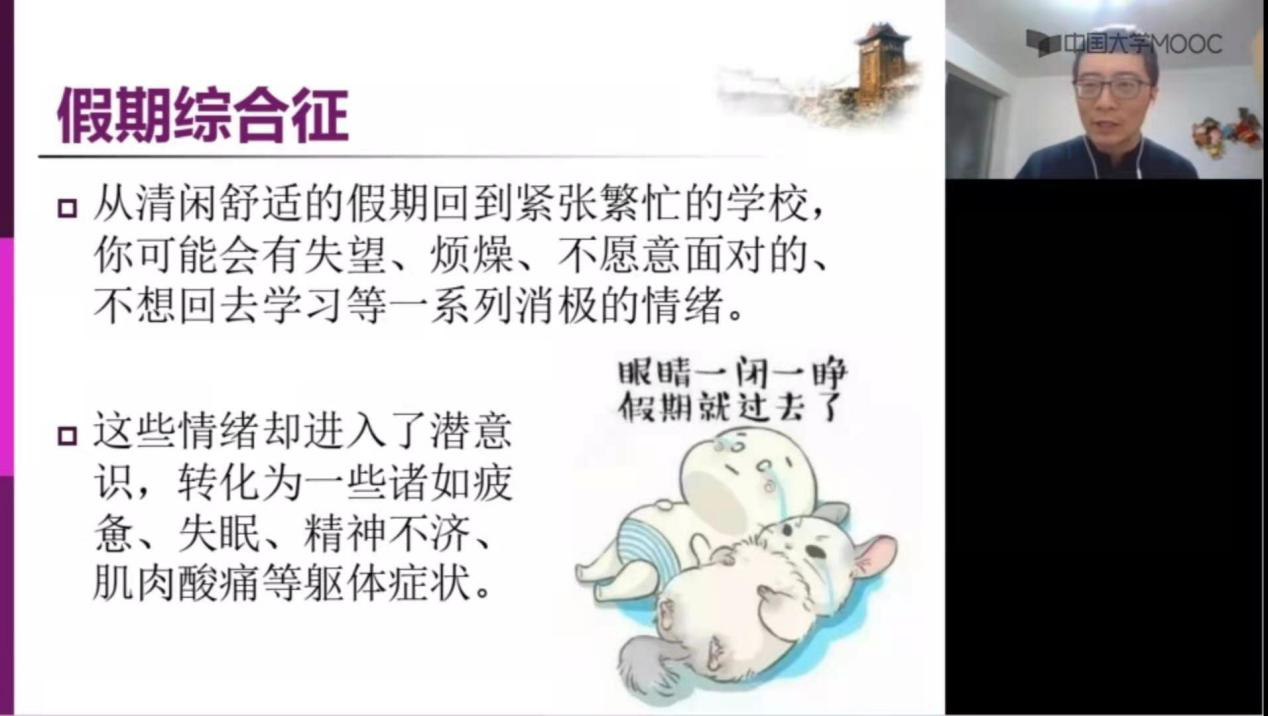 陈昌凯教授首先通过一些现象的描述来说明大家可能会出现的“假期综合症”:身体疲惫、精神不济、情绪低落、肌肉酸痛、空虚、无聊、焦虑……引导大家正视并理解这些现象背后的原因。